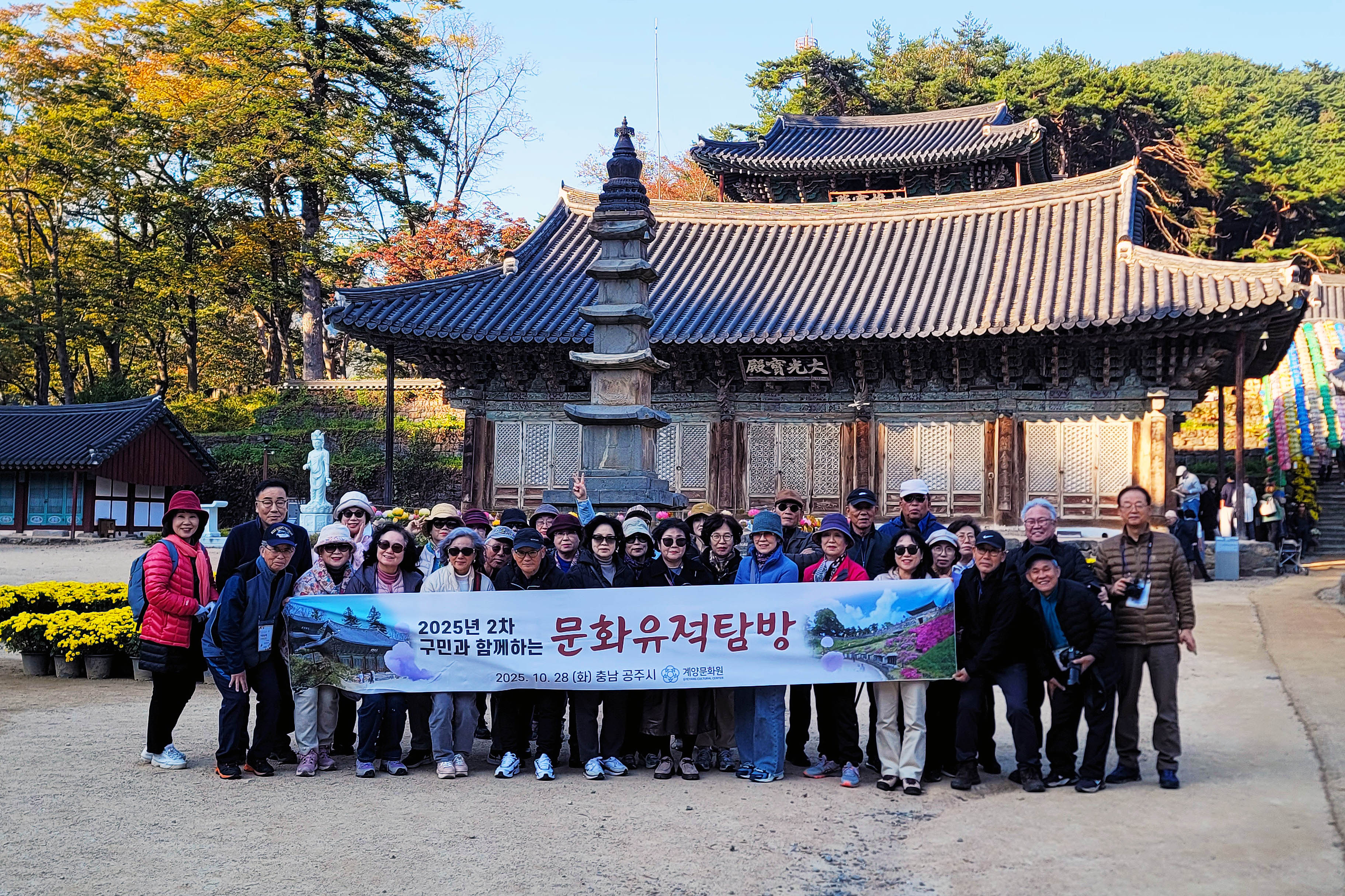 계양문화원(문화원장 신선호)은 10월 28일 계양문화원 회원 40명이 참여하여 자매결연도시 충남 공주시에서 2차 구민 문화유적 탐방을 진행했다.
