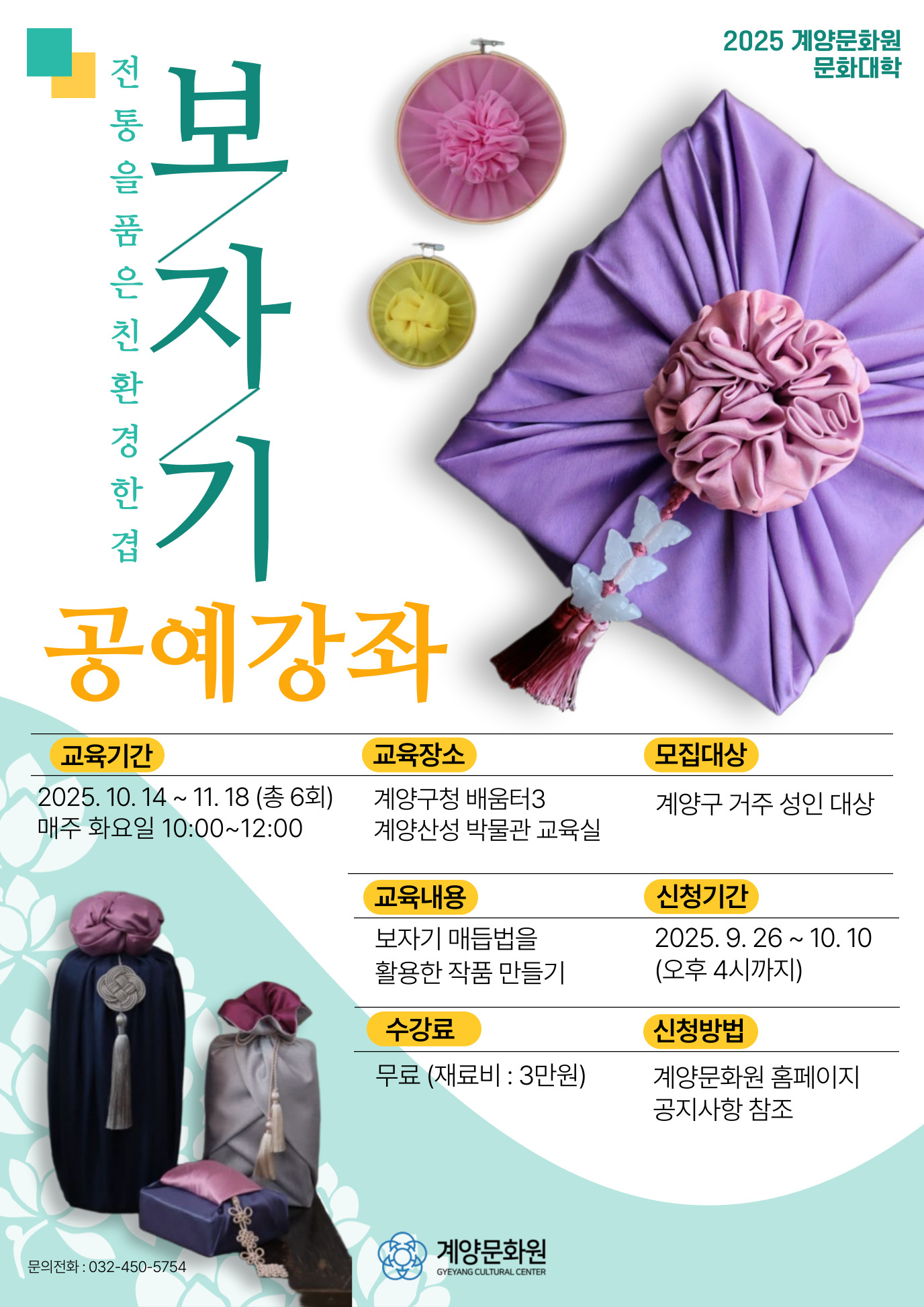 2025 계양문화원 문화대학 전통공예강좌 <보자기 : 전통을 품은 친환경 한 겹> 수강생 모집